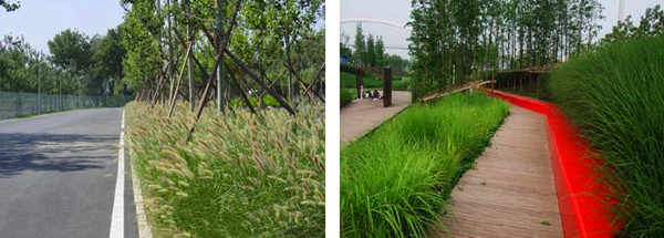 观赏草自然朴实,野趣横生,景观应用时可孤植,丛植,列植,片植。可单植,也可与其它花卉、地被组合混植。作花境、花坛、色块,模纹与其它花卉相互映衬,尤为亮丽。而孤植时也可充分体现观赏草的个体美。成片群植形成的群落,可以产生令人震撼的美感。可广泛应用于公共绿地、公园(特别是郊野类公园)、庭院、高尔夫球场、屋顶绿化等,是打造田园派风格景观的不可或缺的材料。此外也特别适合于水岸河道、公路护坡、矿山复垦、沙漠治理等用途。