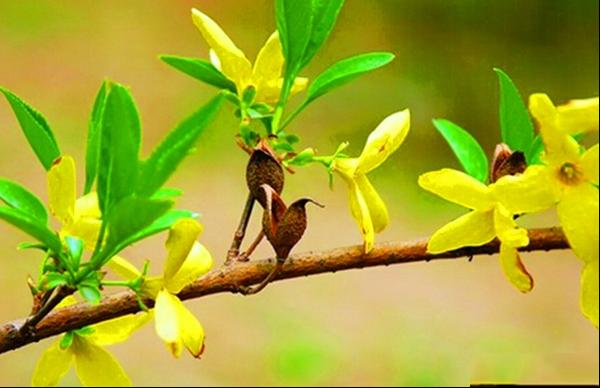 2、迎春的小枝为绿色,连翘的小枝颜色较深,一般为浅褐色。