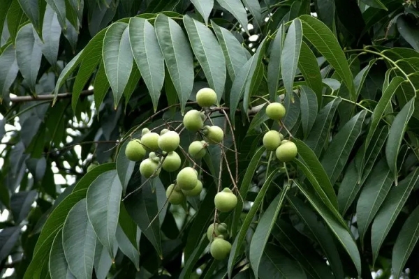 无患子落叶大乔木,高可达20余米,树皮灰褐色或黑褐色;嫩枝绿色,无毛。单回羽状复叶,叶连柄长25-45厘米或更长,叶轴稍扁,上面两侧有直槽,无毛或被微柔毛;小叶5-8对,通常近对生,叶片薄纸质,长椭圆状披针形或稍呈镰形,长7-15厘米或更长,宽2-5厘米,顶端短尖或短渐尖,基部楔形,稍不对称,腹面有光泽,两面无毛或背面被微柔毛;侧脉纤细而密,约15-17对,近平行;小叶柄长约5毫米。