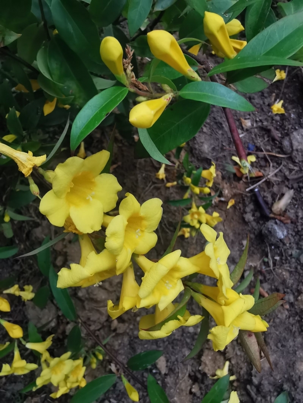 常绿钩吻藤是钩吻科钩吻属常绿木质藤本植物,嫩茎绿色,成熟茎红褐色,地下有粗壮的根茎,叶对生,披针形,表面有光泽,先端尖,全缘或疏生波纹,背面颜色稍淡;羽状脉,具短柄;花单生或成小型聚伞花序,顶生或腋生;花漏斗形,五裂,裂片圆形,先端稍凹;叶披针形,表面有光泽;花漏斗形,花冠裂片5,圆形,先端稍凹,蕾期覆瓦状,开放后边缘向右覆盖,5-11月开花,7月至翌年3月结果。
