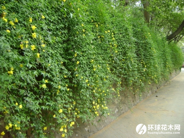 云南黄素馨的观赏价值:迎春枝条长而柔弱,下垂或攀援,碧叶黄花,可于堤岸、台地和阶前边缘栽植,特别适用于宾馆、大厦顶棚布置,也可盆栽观赏。