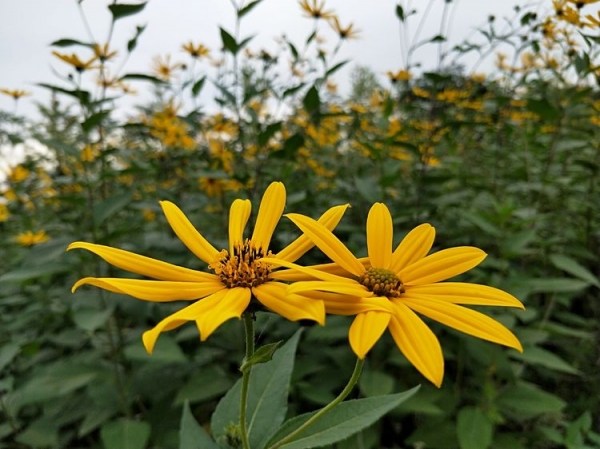 再生性极强:一次种植可永续繁衍。大旱时,地上茎叶全部枯死,但一旦有水,地下茎又重新萌发;每一复生块茎,都分蘖发芽,年增殖速度可达20倍。菊芋籽落地扎根,四处繁衍。