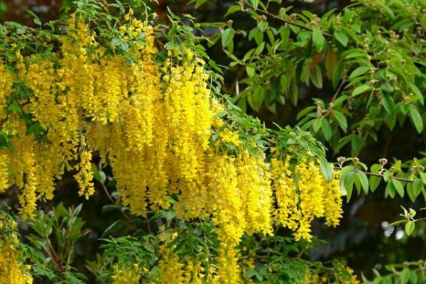 1、观赏:毒豆,春、夏之交开花,花期长,花色金黄鲜艳,花穗长似金链,通常用于行道树和长廊绿化,形如黄色瀑布,壮观迷人。秋天叶色鲜艳,是优良的观叶树种。也可以孤植或群植,利用其柔软的枝条,塑造成不同的造型;或与其他彩色植物搭配,点缀在草坪或石旁,具有非常美丽的造景效果。也可以作为庭院树,美化居住环境。