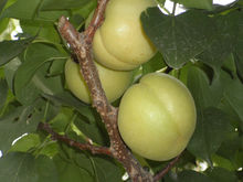 2、河北大香白杏:又名真核香白杏,属鲜食优良品种,果大,平均单果重120克,最大果重180克,果皮薄,底色黄白,阳面着红晕,肉质细腻,汁液充沛,香味浓郁,酸甜适口,含可溶性固形物13.6%,离核,甜仁,品质极佳,果实6月中下旬成熟,较耐贮运。