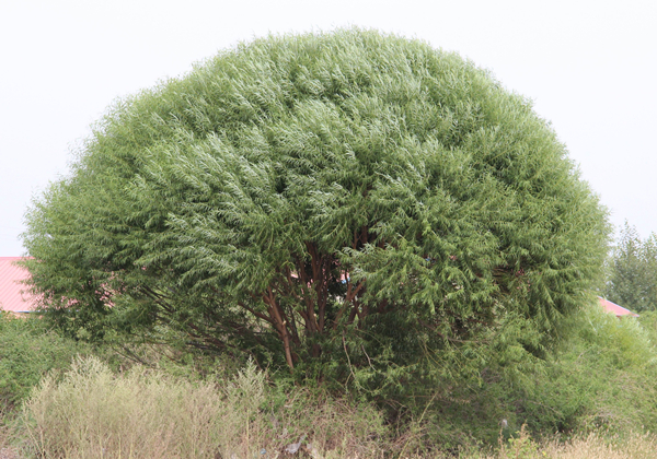 旱柳:分密枝,端稍齐整,形成半圆形树冠,状如馒头。北京园林常见栽培。