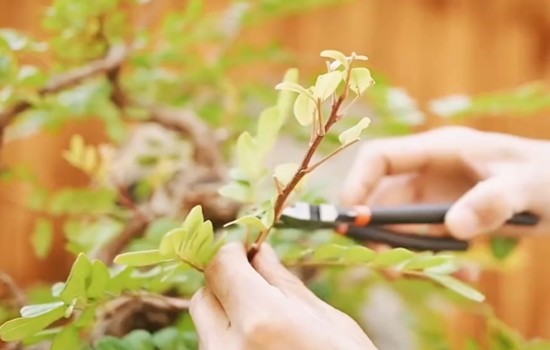如果是完善株型的话,在这一轮的修剪管理过程中,我们首先需要将大部分叶子给它剪掉。但摘叶的话,并不是需要将它所有的叶子剪光,而是每个小枝上需要保留少量叶子,最好每个小枝上保留2片叶子,将多余的都剪掉。