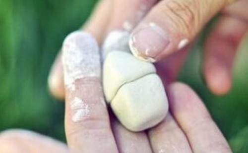 5、接下来取一些粘性比较高的土壤,然后将其揉匀,再将其捏成蘑菇状的成品。