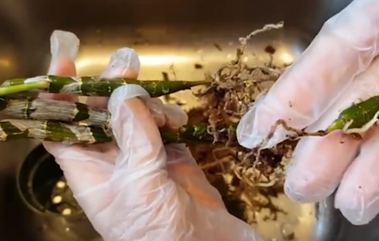 对于这种石斛,建议大家先进行水培抢救,让其长得更好一点,然后再移栽到植料中养护即可。到手后,先给它脱盆,可能大家会发现石斛的根部状态比较差,甚至出现了一些烂根、腐根。这不要紧,只要它还有健康的根系就好。我们只需要将这些不良根系清理掉,然后放在一旁晾干伤口备用。