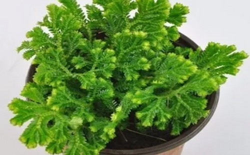 九死还魂草又叫卷柏,具有比较强的耐旱能力,受旱时期根能从土壤中脱离出来并蜷缩成团,叶子也会卷曲;但遇到浇水后根系又会钻入土壤中寻找和汲取水分,叶子也会再次舒展开,从而恢复正常生长,非常神奇。