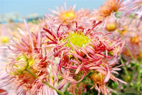 3、凌霜绽妍:菊花——菊花又名寿客、黄花、金蕊、帝女花、更生、菊花是多年生草本植物。株高30~200cm,通常30~90㎝。茎色嫩绿或褐色,除悬崖菊外多为直立分枝,基部半木质化。单叶互生,卵圆至长圆形,边缘有缺刻及锯齿。头状花序顶生或腋生,一朵或数朵簇生。