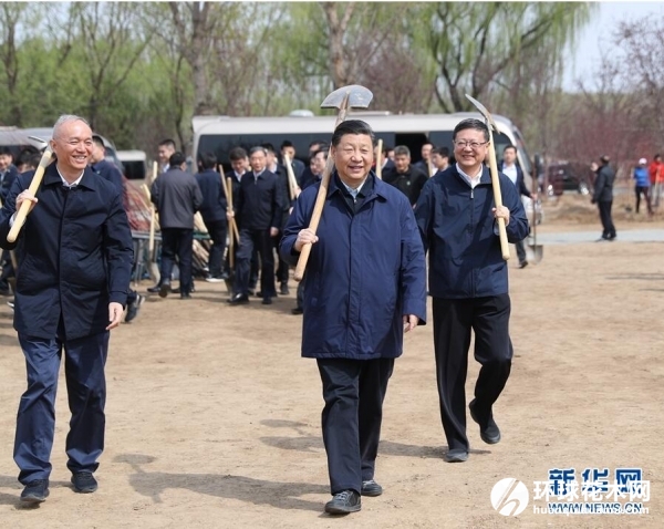 在京中共中央政治局委员、中央书记处书记、国务委员等参加植树活动。