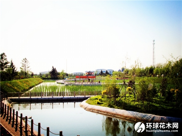2016年,公园沿靖河河道重点打造靖河城内中心区、中水回用人工湿地、靖河南岸生态区三处节点景观区,初步形成"玉带串珠"生态景观格局。为提高靖河两岸生态建设水平,目前已栽植了15个品种的乔木、亚乔木1.5万株,栽植14个品种的灌木15万株,插柳25万株,总计505亩,形成了乔灌结合、尖阔结合、景观与生态结合,高低起伏、错落有致的生态美景。同时,计划在氧化塘景观区,建设2万平方米的荷花池、3万平方米的水草芦苇塘、260延长米的湿地观鸟长廊和1000延长米的游人栈道,打造碧波荡漾、莲子飘香、百鸟争鸣、蒹葭苍苍的生态美景。